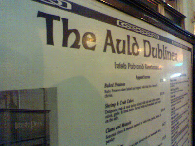 I had a quick dinner at The Auld Dubliner down the street. Bangers and Cheese boxty, which was terrifically tasty. fried potato pancake with cheese and irish bacon… I was gaining weight just looking at it. Oh, I dipped it in the ranch left from my salad, too. Muhahaha.