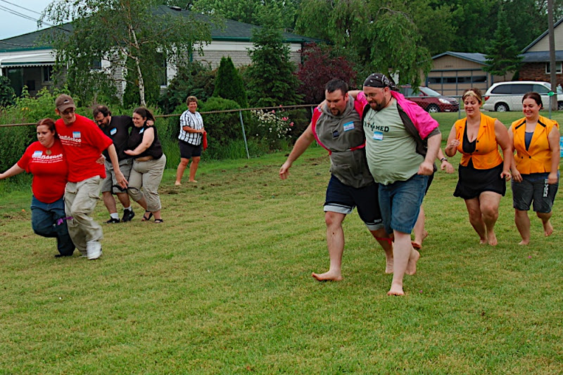 They totally got us back during the three-legged race. We were on our second heat, sure to gain the lead, and you can see them plotting less than six inches behind us as the race begins, and when we turn around, in the lead, WHAM! jerks!